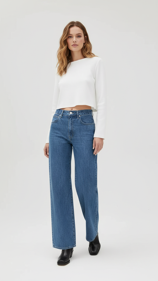 Casual Mid-Rise Denim Multi-Pocket Wide Leg Jeans